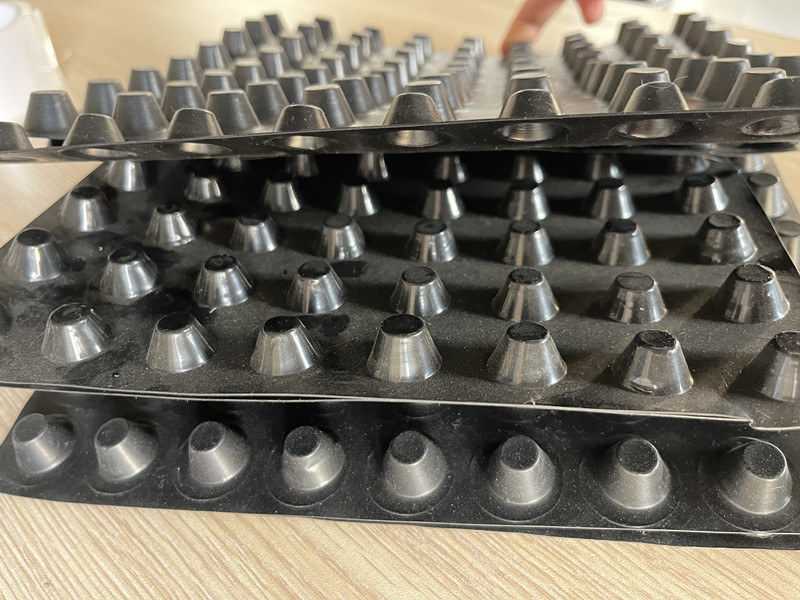 ◆طبقة مقاومة للماء: لوح تصريف مصنوع من البولي إيثيلين عالي الكثافة (HDPE) أو بوليمر متين آخر، تمنع هذه الطبقة تسرب الماء إلى الهيكل.